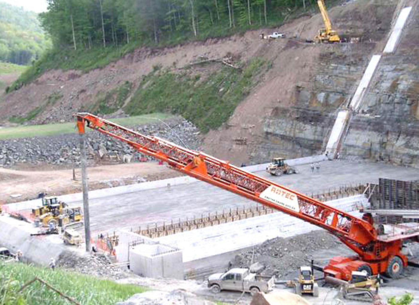 | Vertical | RCC against precast concrete panels with geomembrane |