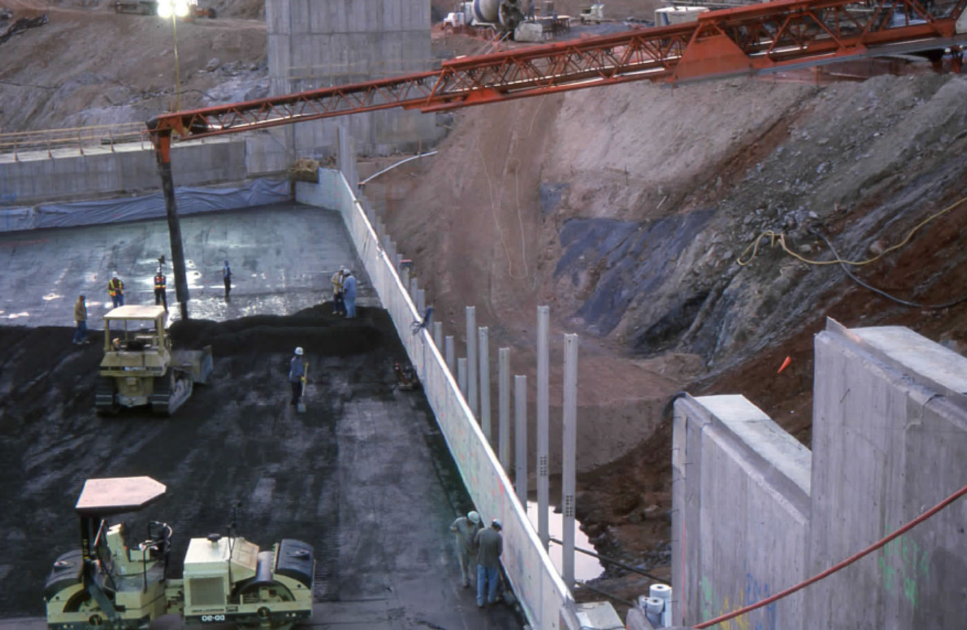 | Vertical | RCC against precast concrete panels with geomembrane |