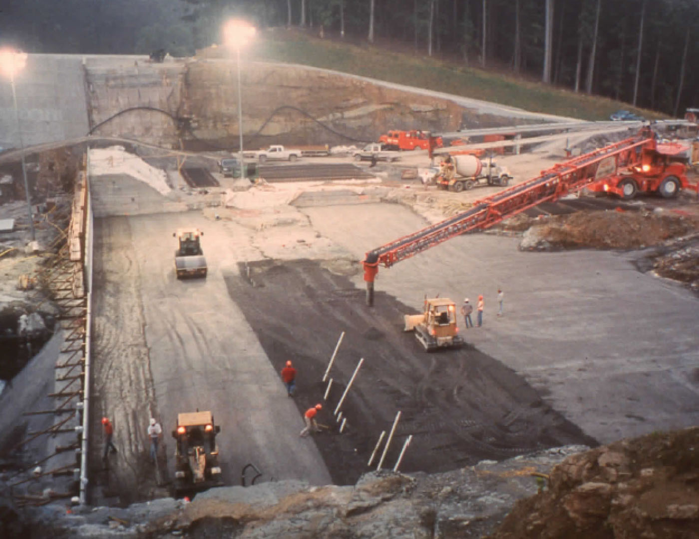 | Vertical | RCC against precast concrete panels with geomembrane |